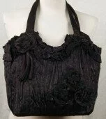 Jodie Black Organza Shoulder Bag With Seven Roses 003558